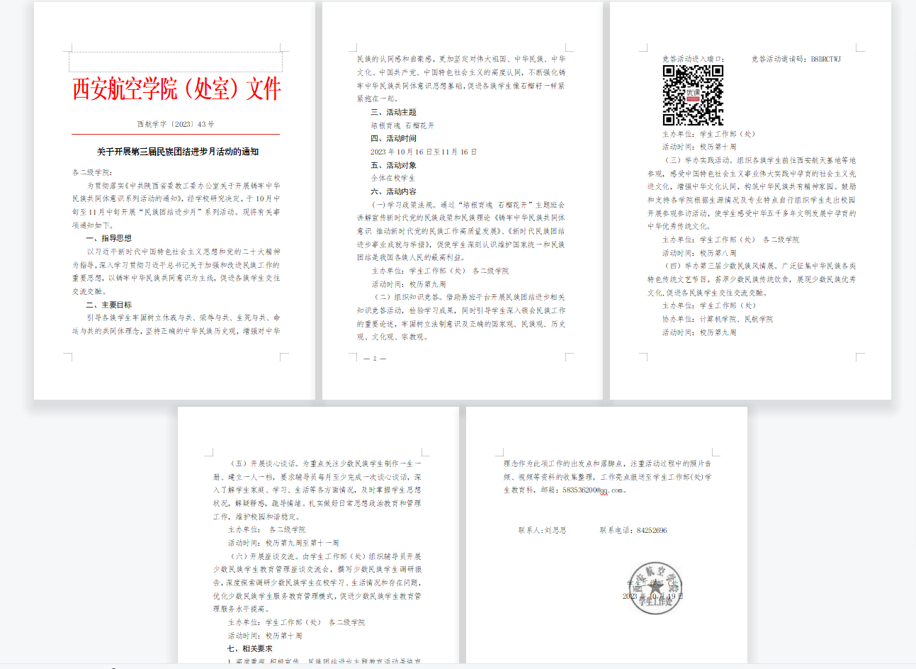 加强组织领导,精心安排部署。按照《中共陕西省委教工委办公室关于开展铸牢中华民族共同体意识系列活动的通知》要求,威尼斯官网高度重视,统一安排部署,制定了第三届民族团结进步月活动方案,活动内容切实把民族团结进步教育同加强和改进新形势下高校思想政治工作紧密结合起来,形成了学校重视、学院配合、师生广泛参与的良好格局。