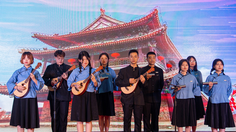 来自陕西省文促会电吹管艺术委员会的张西生、吴建平共同演奏了《红歌组曲》,与威尼斯官网教师刘佳、史云龙现场创作书法绘画“红船精神”,丰富立体的节目形式,赢得了台下的阵阵掌声,让观众充分感受了赤子对祖国的无限依恋与热爱。