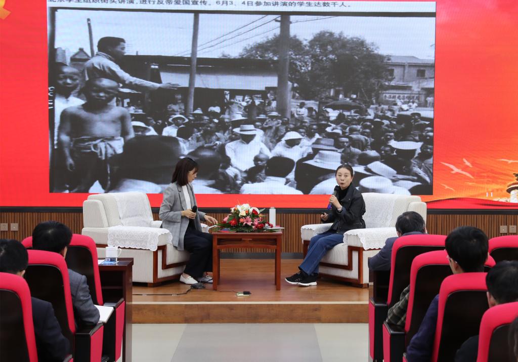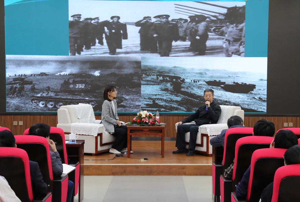 报告会以访谈的形式开展。赵京娅从赵镕将军学生时期组织青年积极响应五四运动,革命期间从事部队后勤领导工作,编写第一部红军簿记学并亲自授课、坚持办学等革命经历,深情讲述了赵将军在朱德的引领下,从一名青年学生成长为一名开国将军,几十年初心不改,践行党的宗旨使命的故事。赵镕将军一生投笔从戎,被誉为“红色簿记(会记学)第一人”,以大无畏的革命精神,为党领导的人民军队战时供应及后勤正规化建设作出了重要贡献。张旅天以“有个地方叫马兰”为主题,从张蕴钰将军八年抗战,淮海鏖兵,长江飞渡,上甘岭前令美帝丧胆;辽东演军,西陲踏勘,戈壁马兰,蘑菇云腾挺中华脊梁等方面回顾了张将军的革命生涯。重点分享了张将军作为中国第一任核司令,在艰苦的大戈壁滩为中国原子弹的研发鞠躬尽瘁的故事,讲述了程开甲、林俊德、乔登江、黄豹等科学家及马兰的干部、战士、职工、家属、“马兰二代”们扎根大漠,献身国防的感人事迹,共同感受了老一辈基地建设者们伟大的两弹一星精神。张蕴钰将军领导了我国核试验基地的建设,参与了我国第一次原子弹、氢弹、导弹核武器、洲际导弹、潜射导弹、通信卫星等重大试验的组织领导工作,为新中国“两弹一星”事业作出了巨大贡献。