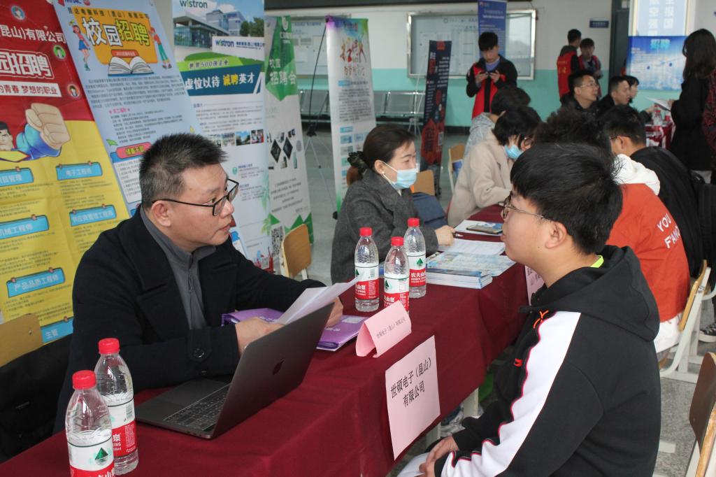 为促进学校毕业生高质量充分就业,探索校政企可持续发展合作模式,鼓励优秀毕业生投身到国家战略性新兴产业中建功立业,3月18日,江苏省昆山市人社局、宜兴市人社局带领所属16家企业,提供近800个工作岗位,涉及机械、电子、计算机、经管等多个专业,前来威尼斯官网,与学校就区域合作、区内企业校企合作开展座谈,并联合举办长三角区域组团招聘会。