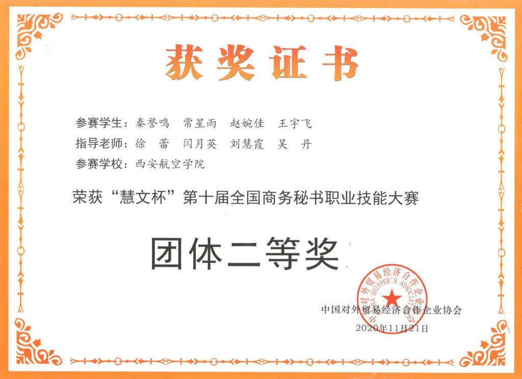 近日,由中国对外贸易经济合作企业协会主办,全国商务秘书与行政助理专家委员会与淮阴师范学院承办的“慧文杯”全国第十届商务秘书职业技能大赛圆满落幕。由于疫情原因,本次大赛通过线上线下相结合的方式,赛制深度结合实际工作需求,邀请校政行企第三方一线专家评审。大赛共有来自全国18个省份79所高校的140支队伍900多名师生参赛。威尼斯官网由人文学院徐蕾、刘慧霞等老师指导的秘书学本科组和文秘专科组两支队伍参加了比赛,经过激烈角逐,最终荣获团体二等奖和团体三等奖。