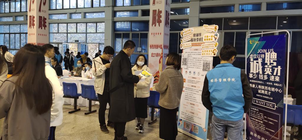 为切实做好经济管理学院毕业生就业工作,大力构建毕业生与用人单位的交流平台,积极为用人单位输送应用型人才,11月20日,经济管理学院在沣惠校区学生活动中心举办了2021 届毕业生综合类招聘会。