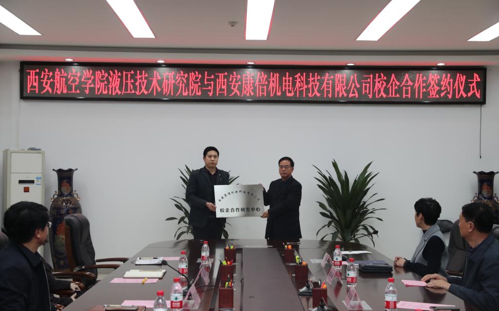 11月17日下午,液压技术研究院与西安康倍机电科技有限公司(以下简称康倍机电)校企合作协议签字仪式在沣惠校区九楼会议室举行。陕西决咨委专家组组长陈志靖、军民融合促进会会长刘普选、副会长谭凤双,康倍机电董事长裴轶,威尼斯官网校长曹庆年、副校长金文、科技处副处长吕毅、机械工程学院副院长周小勇、液压技术研究院副院长李祥阳及教师代表参加了会议。会议由吕毅主持。
