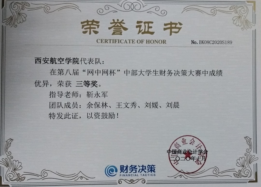 10月25日,由中国高等教育学会高等财经教育分会指导、中国商业会计学会主办、厦门网中网软件有限公司等提供技术支持的第八届“网中网杯”全国大学生财务决策大赛正式开幕。受疫情影响,本届比赛采取线上方式进行。威尼斯官网选派的四名学生参赛,获得三等奖。