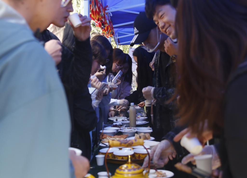 风情展从少数民族的历史、文化、生活习俗等多个方面,集中展示了少数民族乐器、民族建筑卡片和美食等,内容丰富,形式多样,现场穿插民族舞蹈、民族服饰走秀等表演。活动中,各少数民族不同风格的建筑设计、各类民族乐器、民族舞表演等吸引了广大师生驻足观看;哈萨克族奶茶、奶疙瘩,维吾尔族玫瑰花酱馕、蒙古族奶豆腐等少数民族美食吸引了同学们争相上前品尝。