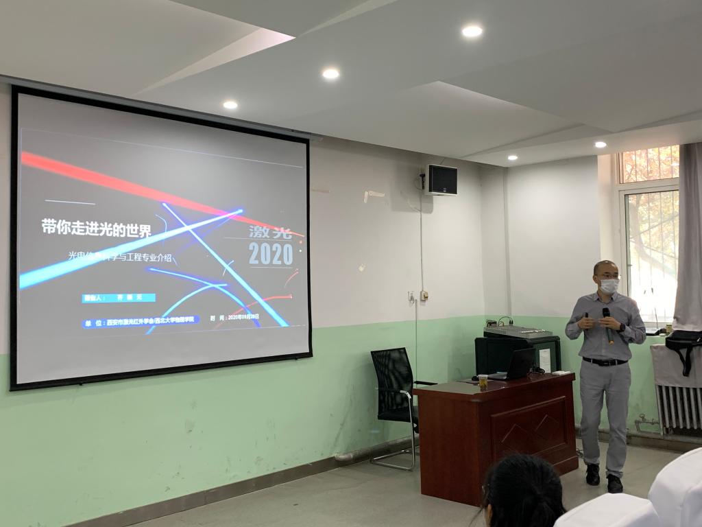齐新元博士从光电信息科学与工程专业简介、专业能学到什么、专业发展历程、专业就业去向和要求、我们该如何规划自己的大学四年时光等五个方面给大家深入浅出地介绍了该专业的发展背景以及学术前沿问题。最后,他详细介绍了西北大学光电信息科学与工程专业的发展概况和专业方向,并鼓励同学们要认真学习,珍惜四年大学时光,将来积极报考西北大学光学专业和光学工程专业硕士研究生。