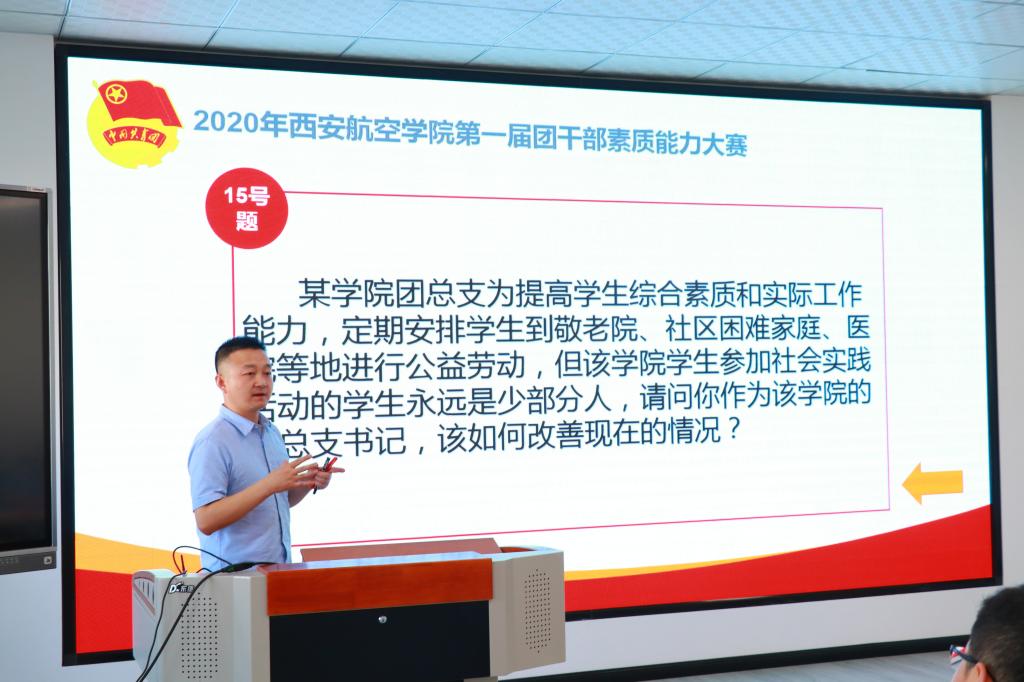 大赛分为教师组和学生组,由理论知识测试、主题团日活动视频展示、团课讲授及案例分析等四个环节组成。学校14名专兼职教师团干及286名学生团支部书记参加了此次比赛。选手们紧密结合时政热点,充分贴近青年特点,围绕习近平总书记来陕考察讲话精神、从共青团的发展历史看共产党领导的先进性、从疫情防控看制度自信、从战疫英雄看雷锋精神的传承、从5G发展看中国速度等方面讲授了一堂堂生动活泼、内涵丰富的微团课。案例分析环节内容涉及共青团基层组织建设、志愿服务、学生会改革、社团管理等贴近实际工作内容的案例,选手们以中省文件和团学工作规范为依据,联系具体工作实际进行阐述作答,既有解题思路,又有工作启示,充分展示了威尼斯官网青年团干良好的精神风貌。