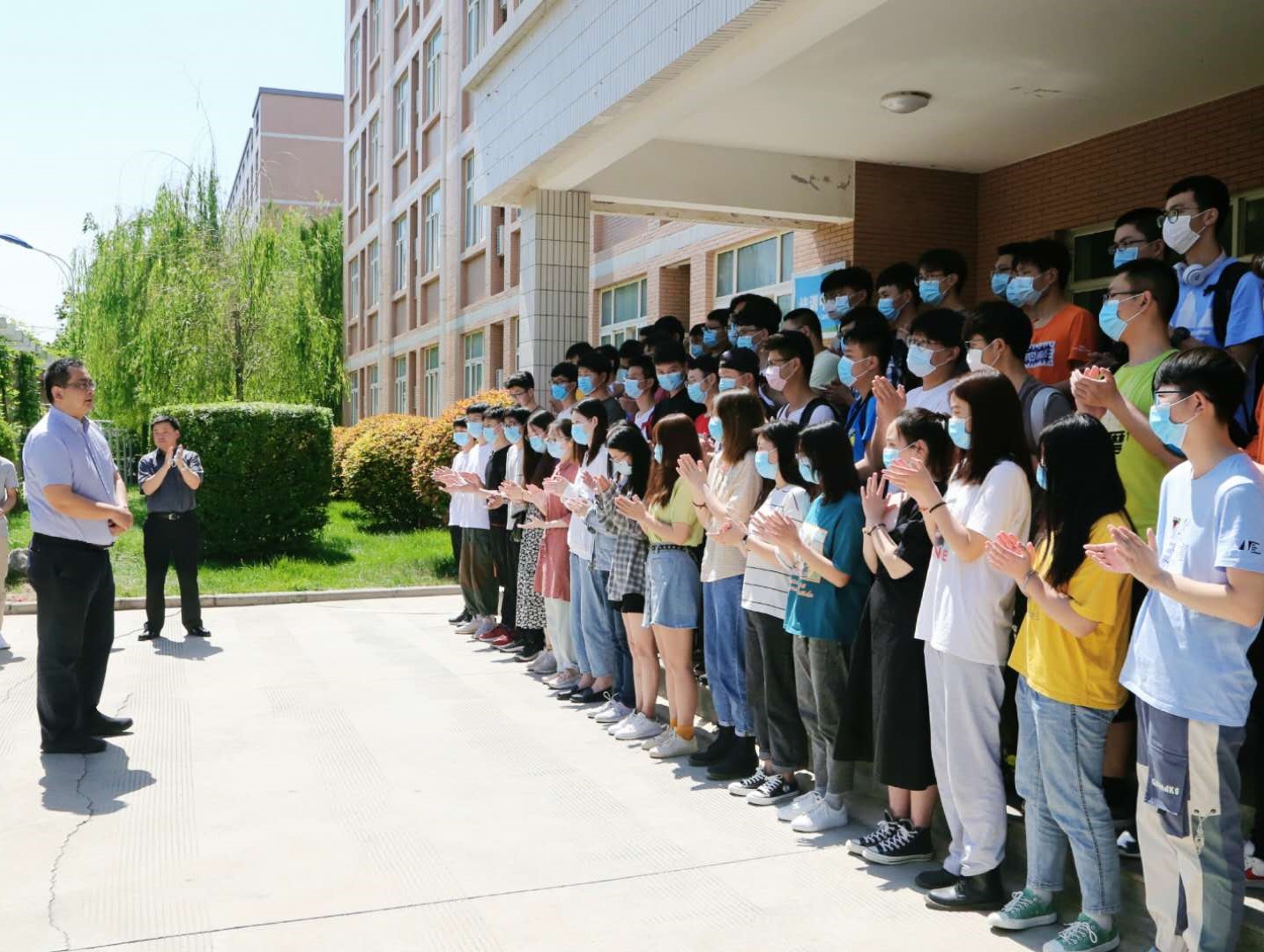 5月29日,第二批返校的湖北籍和疫情风险中高等级地区的学生核酸检测结果均为合格,在阎良校区教师公寓隔离期满14天,解除隔离,返回校园开始正常的学习生活。学校在阎良校区教师公寓门前举行了欢送、迎接仪式,党委副书记刘谦、隔离区管理小组成员、各二级学院党总支书记、辅导员、学生干部代表参加仪式。隔离区管理小组组长、机关党总支书记张永成主持仪式。