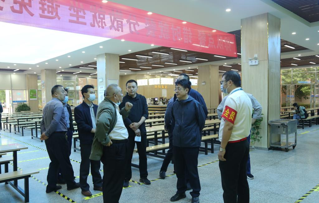 在学生返校接待点,校领导认真察看了接待点布置情况、热成像体温检测系统、快速通道和临时留观室,详细询问了学生返校报到流程和突发情况处理方案;在高中风险地区学生返校隔离区和学生日常发热临时隔离区,仔细察看了隔离学生饮食起居和隔离区干部24小时值班情况,逐一询问了隔离学生的诉求和健康状况,强调落实好核酸检测等医学措施,杜绝返校隐患;在学生公寓,认真检查了宿舍周边环境卫生、疫情防控物资储备、消毒消杀以及室内通风落实情况,与第一批返校毕业生热情交流,了解毕业论文、答辩准备和日常生活情况;在学生餐厅、浴室、开水房和健身房,强调一定要保障服务质量,做好学生错时分流。