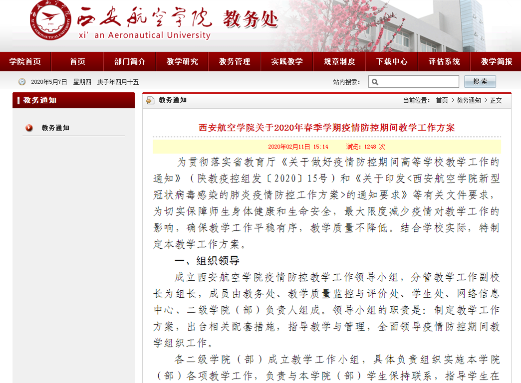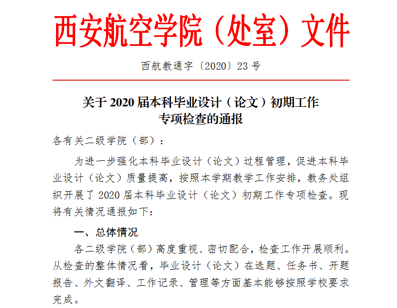 为贯彻国家教育部和陕西省教育厅关于新型冠状病毒肺炎疫情防控工作部署,全面落实“停课不停教、停课不停学”的工作要求,教务处精心组织,各教学单位认真落实,全体教师积极参与,2020届本科毕业设计(论文)工作平稳有序,确保标准不降低、进度不延误、质量有保证。