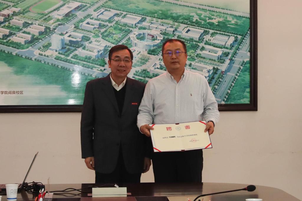 金文介绍了冯炯辉和刘国强的基本情况,陈平社为两位特聘教授颁发聘书。在交流发言中,两位特聘教授表示非常感谢学校的认可与信任,今后将为学校在民航人才培养、学科专业建设等方面贡献自己的力量。