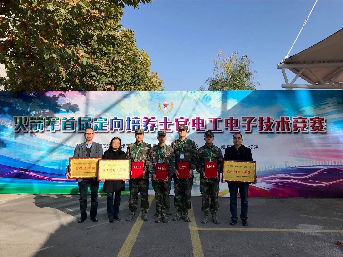 包括火箭军士官学校、火箭军定向培养士官院校在内的19家军地院校代表参赛。本次竞赛主要考核选手电机与电气控制、模拟电路、仪器仪表等技术知识及电工电子装配技能。经过紧张激烈地角逐,威尼斯官网代表队荣获团体项目三等奖;电气2061班张帅宝、电气2060班廉明获电工组三等奖;电气2061班张希炜、康伟伟获电子组三等奖。