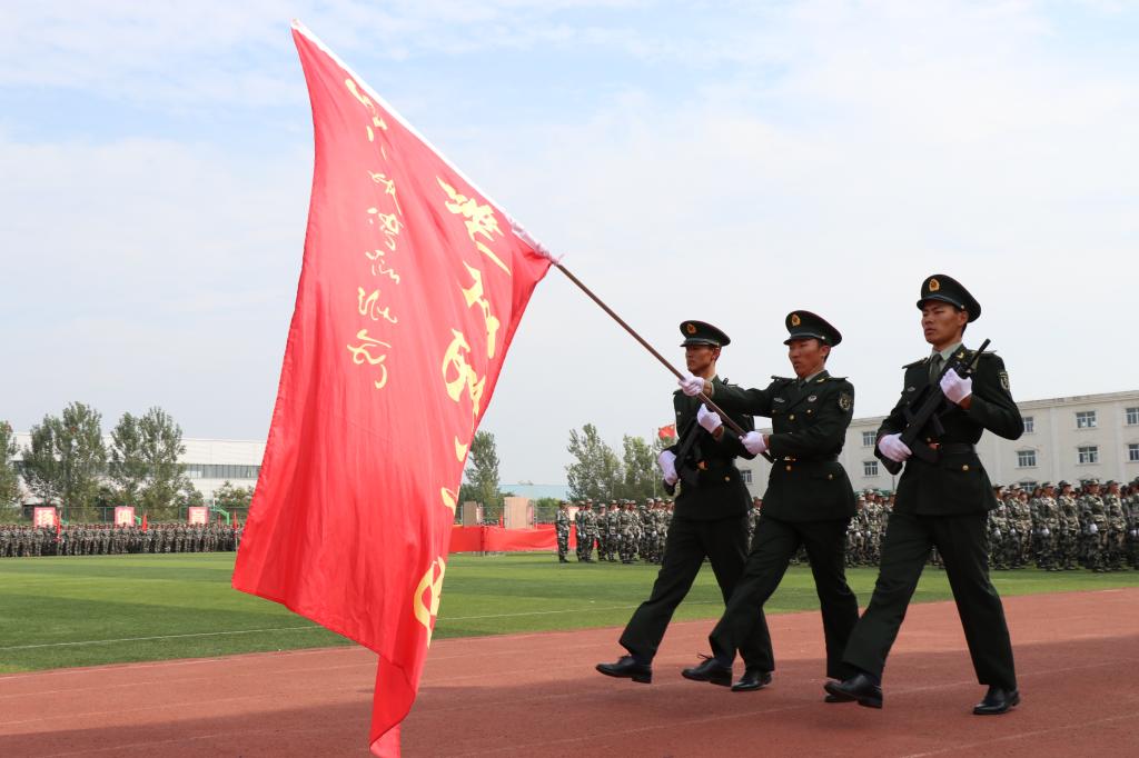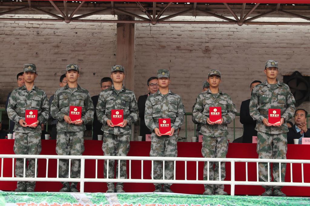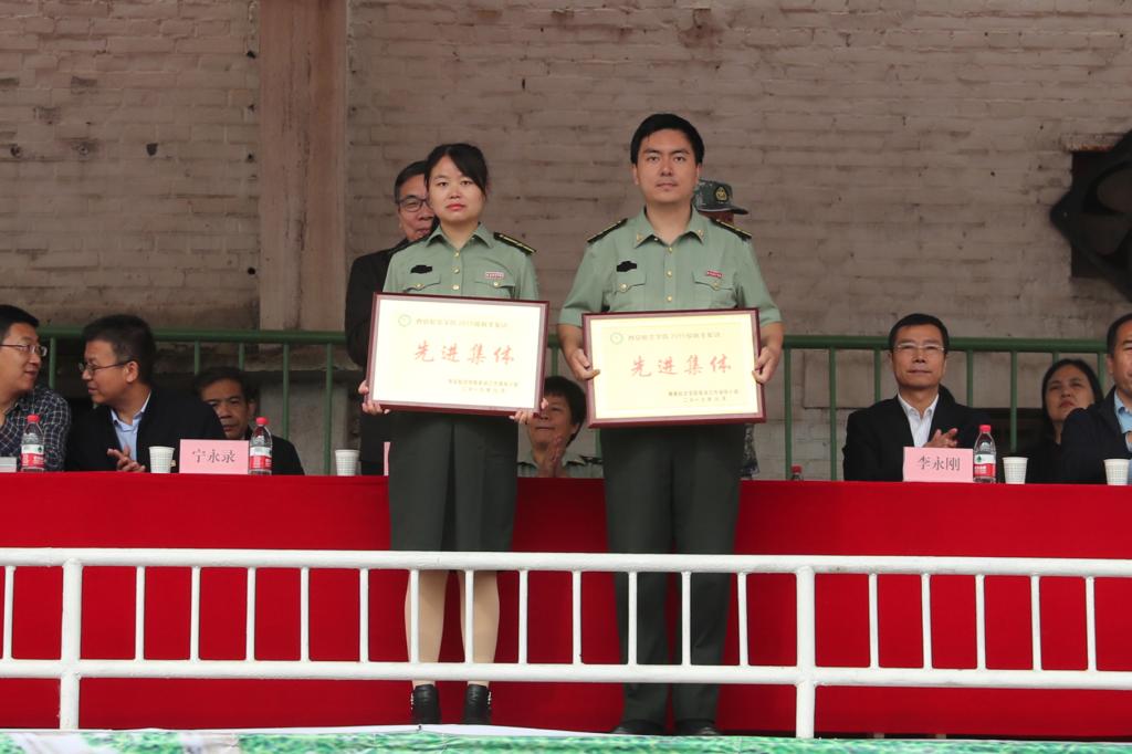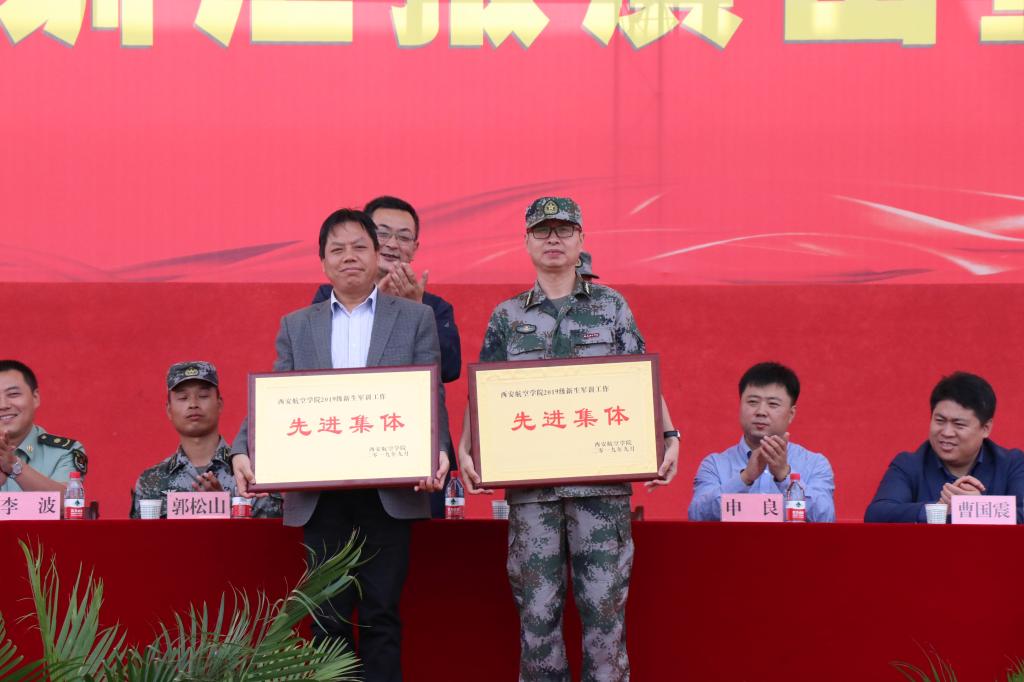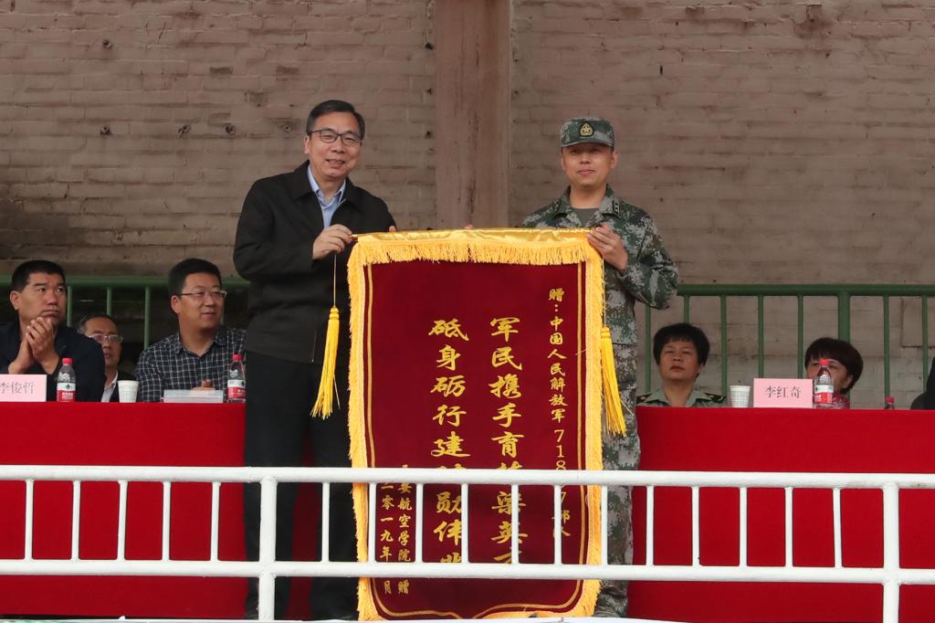 陈平社、刘谦代表学校向承训部队赠送了锦旗。