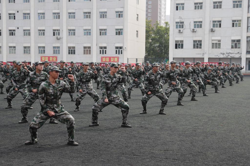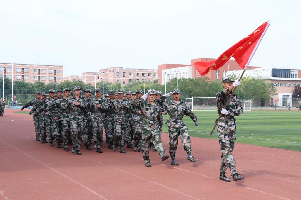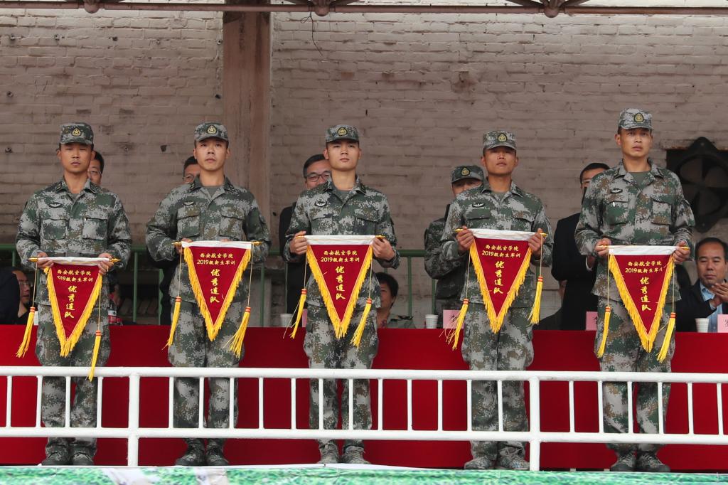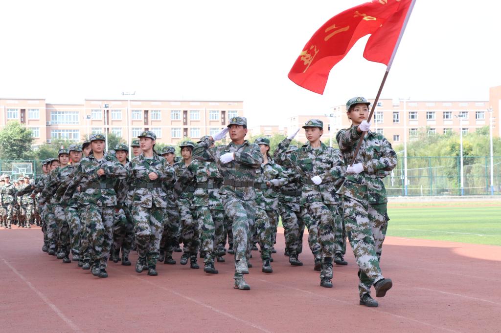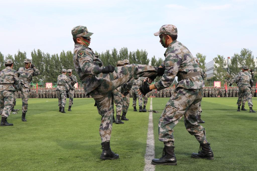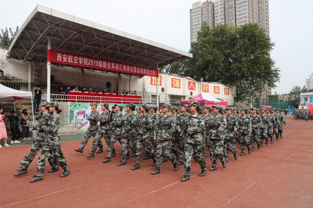军训汇报演出暨总结表彰大会在庄严的国歌声中拉开帷幕。伊始,女生营精心排演花样队列精准走位,摆出了“新中国70周年”等图案和字样表达祝福祖国的喜悦之情。接着,参训学员们通过分列式、匕首操、擒敌配套、刺杀操、格斗棍术、军体拳、反恐演练等展示了14天来的训练成果。分列式表演在铿镪顿挫的解放军进行曲中进行,同学们斗志昂扬、精神抖擞接受大会的检阅。军体拳呐喊雷动、气势如虹。刺杀操表演刚劲强健、震人心魄。擒敌配套表演体现了铮铮铁骨、血性刚强的士官生形象。反恐演练将时事热点进行改编,表达了同学们祝福和平、抵制暴力的心愿。整个汇报表演给所有新生上了一堂生动的爱国主义教育课和国防教育课。