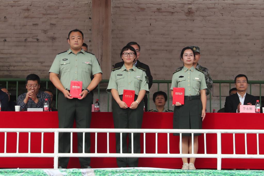 能源与建筑学院给排水191班的王玉娟、经济管理学院表演191班朱睿劼分别作为优秀学员代表发言,抒发了军训感受以及爱党爱国爱校的热情。
