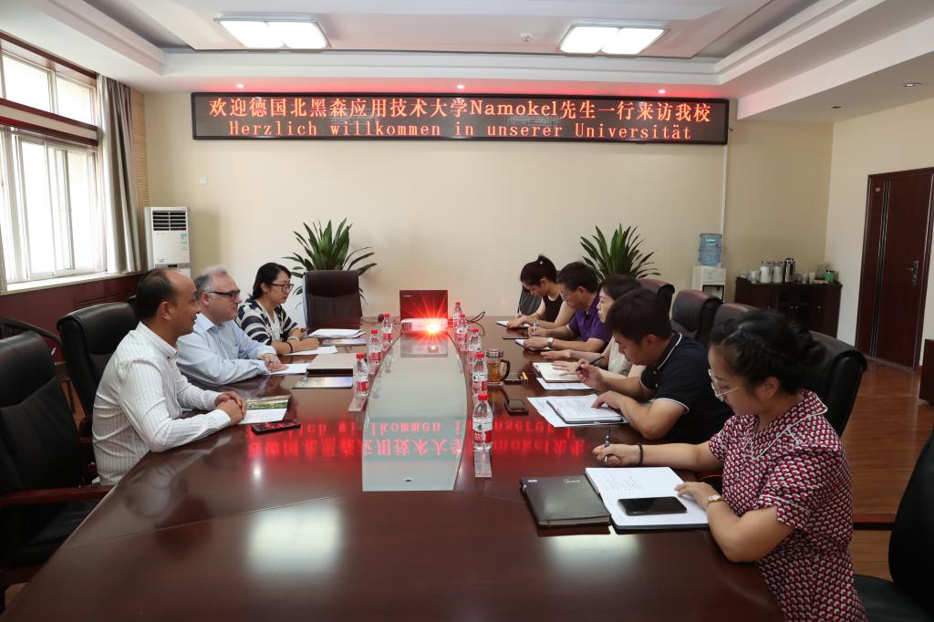 9月2日,德国北黑森应用技术大学副校长Namokel教授应邀来访威尼斯官网,深入洽谈两校合作办学事宜。副校长金文出席座谈会,国际合作与交流处、机械工程学院负责同志和德中教育文化交流协会项目负责人参加了座谈。会议由国际合作与交流处处长申良主持。