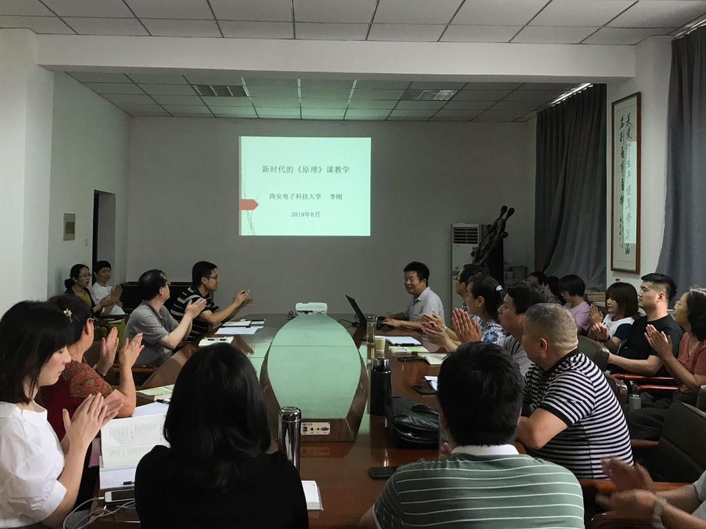 为深入学习领会习近平新时代中国特色社会主义思想和习近平总书记在学校思想政治理论课教师座谈会上的重要讲话精神,进一步探讨在教学实践中如何贯彻落实座谈会精神,用新思想、新精神指导和丰富《马克思主义基本原理概论》课教学,8月31日下午,西安电子科技大学马克思主义学院院长、博士生导师、威尼斯官网特聘教授李刚为马克思主义学院全体教师作了一场题为“新时代的《原理》课教学”的辅导报告。党委副书记谭少敏参加报告会。