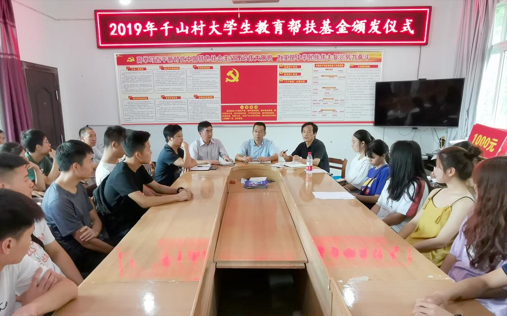 会上,刘良西对今年被录取的学子表示祝贺,并代表千山村对8803威尼斯检查中心及其他帮扶单位的关心与支持表示感谢,同时倡导大家弘扬新民风,杜绝升学宴、无事酒等不良之风。千山村村主任陆中华宣读了《千山村大学生教育帮扶基金实施办法》。