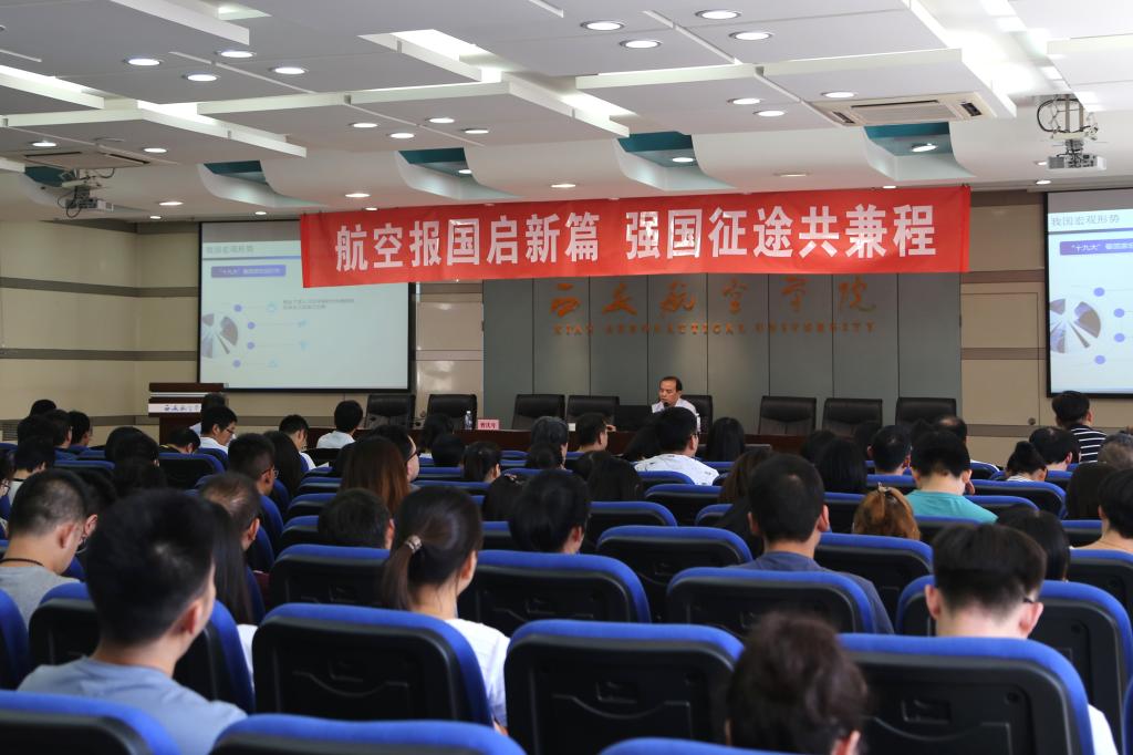 7月5日下午,学校邀请中航电测仪器股份有限公司党委副书记、总经理刘东平为师生作题为“航空报国启新篇 强国征途共兼程”的专题报告。教师代表、2019年新进教师共两百余人聆听报告。报告会由校长曹庆年主持。