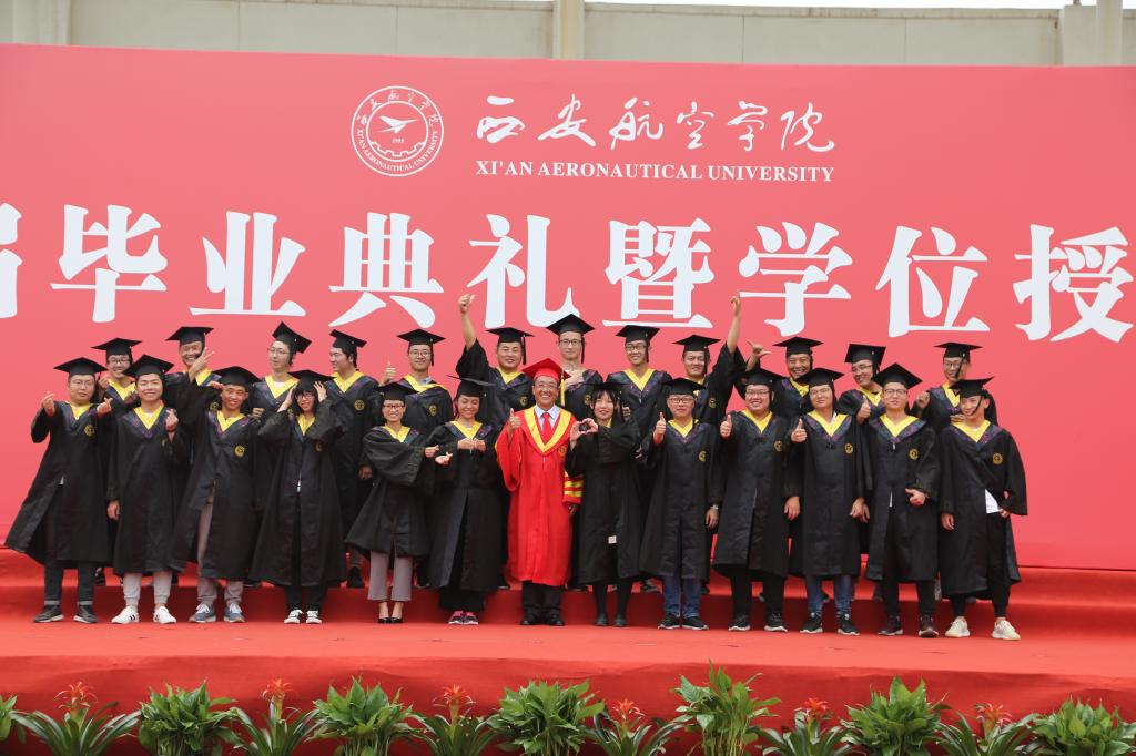 毕业生代表王博豪分享了四年来在西航生活、学习、奋斗的经历与感受,感谢恩师的谆谆教诲,感恩母校带给他成长的蜕变,倡议全体毕业生不忘初心,秉承“德能日新,刚健有为”的校训,为建设社会主义现代化强国作出自己的贡献。