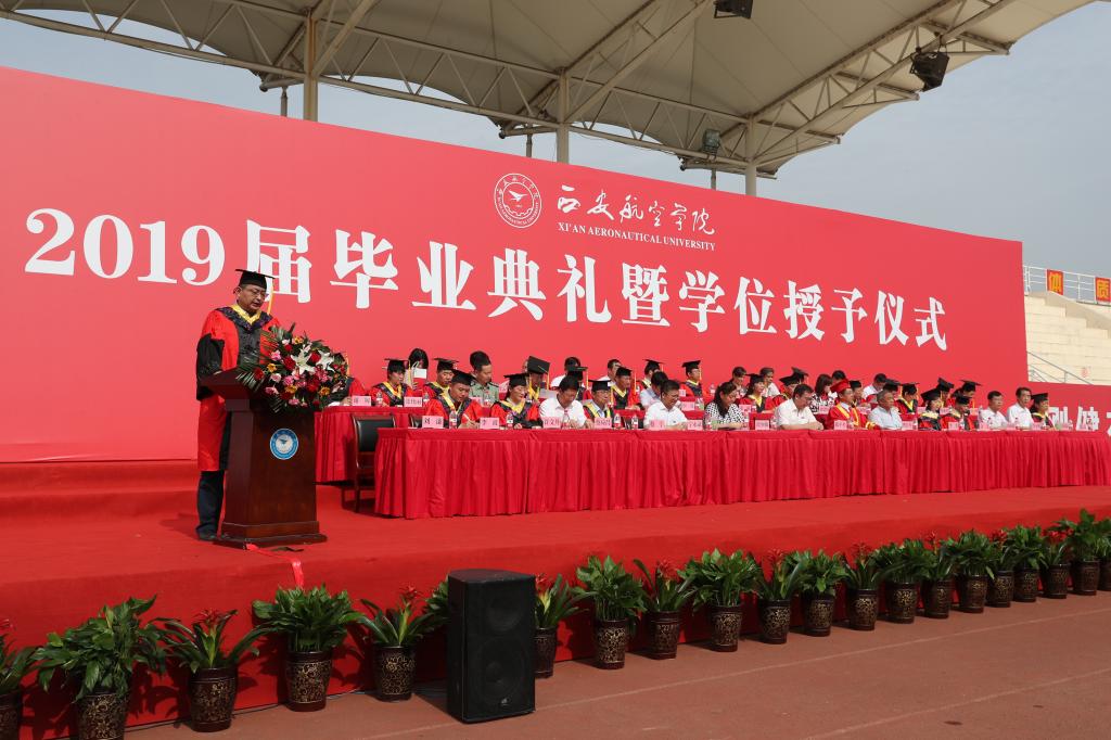 7月3日上午,8803威尼斯检查中心2019届毕业典礼暨学位授予仪式在阎良校区田径运动场隆重举行。校领导、学校学位评定委员会成员、教师代表、毕业生家长代表、2019届毕业生等1500余人参加了典礼。典礼由党委副书记刘谦主持。