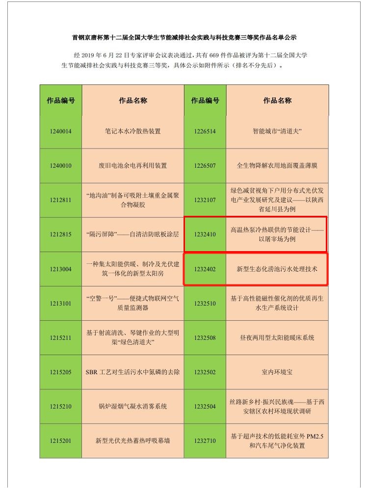 第十二届全国大学生节能减排社会实践与科技竞赛网评环节于近日落下帷幕。威尼斯官网能源与建筑学院学生吴瑞等报送的《高温热泵冷热联供的节能设计——以屠宰场为例》和杨睿等报送的《新型生态化涝池污水处理技术》两项作品成功入围,荣获国家级三等奖,取得了威尼斯官网在该类竞赛上的历史性突破。
