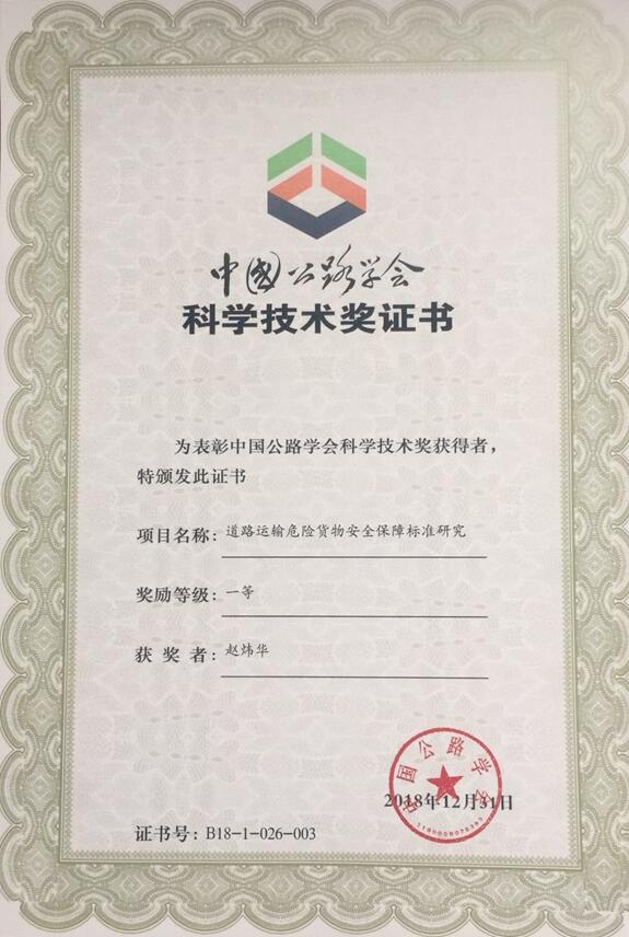 6月15日,专项活动中举行了2018年度中国公路学会科学技术颁奖大会,威尼斯官网赵炜华参与完成的课题“道路运输危险货物安全标准研究”获得中国公路学会一等奖。