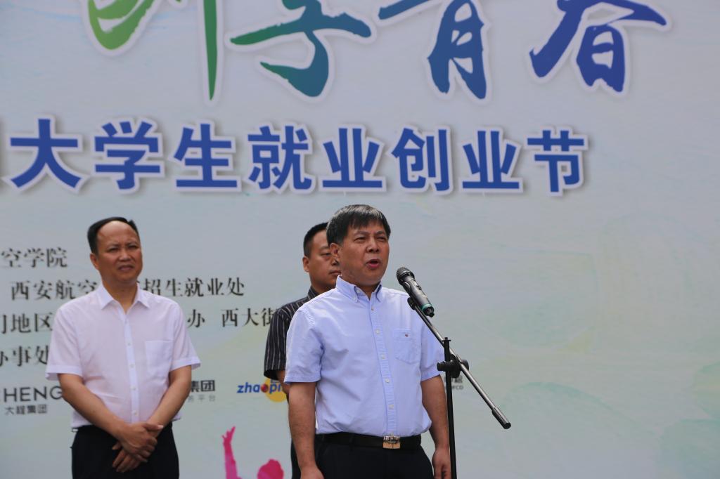 开幕式上,刘谦向莅临本次活动的各位领导和师生表示欢迎,他指出,作为莲湖区内唯一一所本科高校,宣传和落实好中省市区各项就业创业政策,是学校义不容辞的责任与担当。他希望同学们要“力当先行者”,共享大西安的发展机遇,争做共建西安、共建莲湖的新生力量。