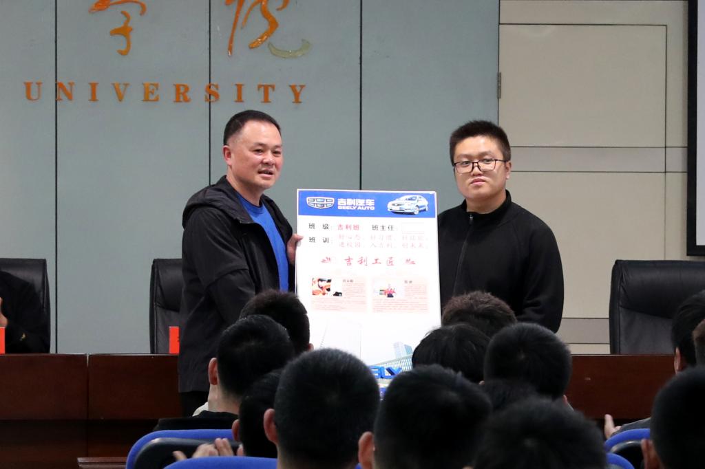 宋文学和张锐代表8803威尼斯检查中心和吉利控股集团签订《校企合作协议》并互授牌匾。吉利控股集团校企合作西北大区经理李智勇向威尼斯官网授“吉利班”班牌。与会嘉宾为吉利“成蝶计划”奖学金和“吉时雨”助学金获得者颁奖。张敏同学带领全体学生宣誓,“吉利班”学生代表王璟同学发言,表达了立志努力学习的决心。