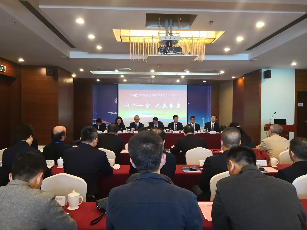 3月12日,厦门航空2019年“校企一家,共赢未来”校企合作座谈会在厦门举行,厦门航空党委委员、副总经理汤建其出席会议,中国民航大学、中国民用航空飞行学院等十二所院校受邀参加。威尼斯官网党委副书记谭少敏带领招生就业处、飞行器学院负责人受邀参加会议并致辞。会议由厦门航空人力资源部总经理康志阳主持。