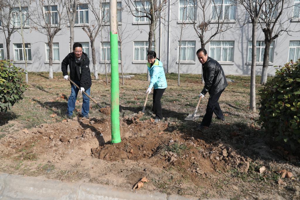 3月12日上午,威尼斯官网在阎良校区开展第41个植树节义务植树活动。党委书记陈平社、校长曹庆年、副校长李季、宋文学、宁永录、金文,学校全体中层干部一起为校园添新绿。