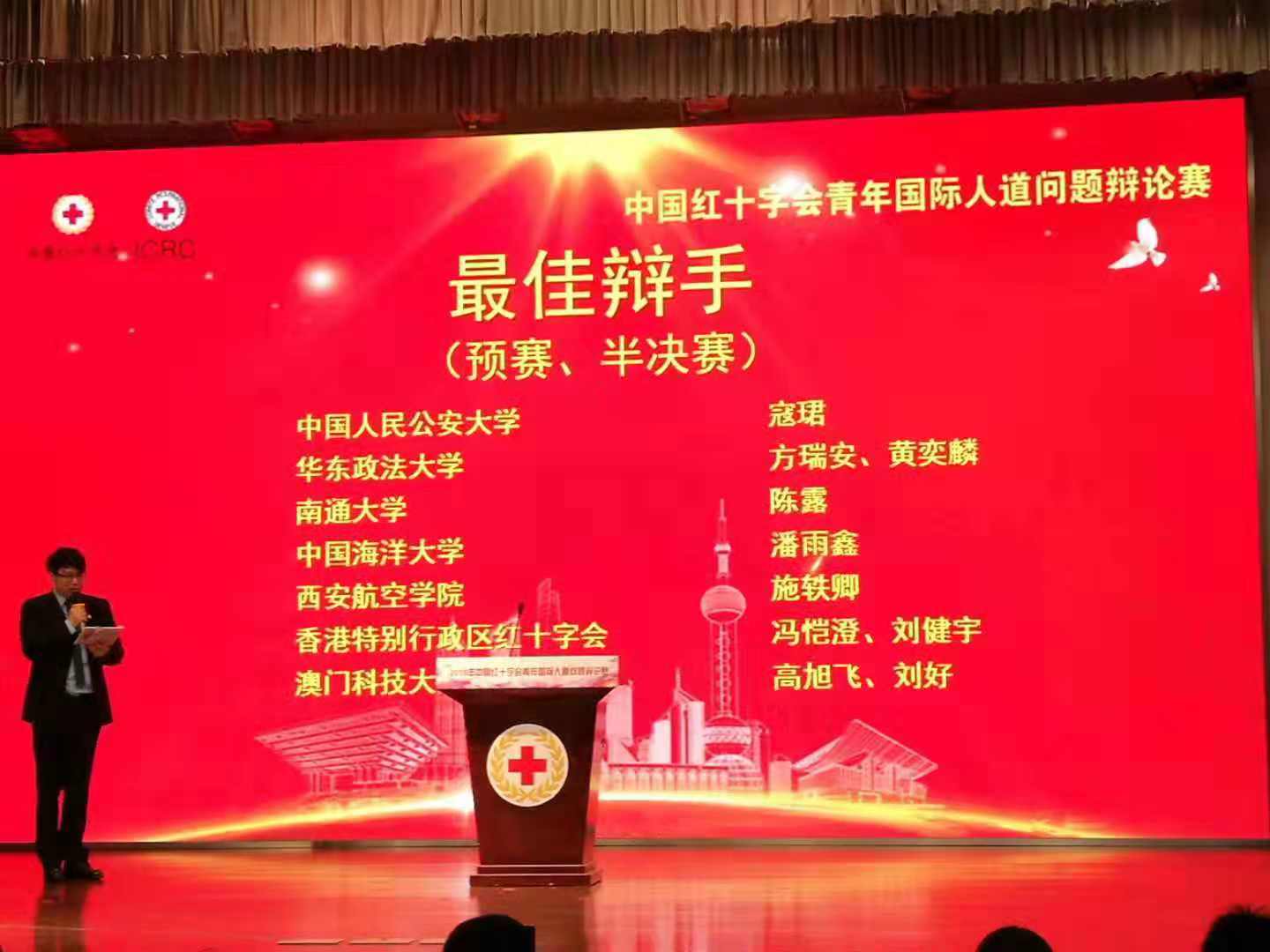 11月24日—25日,2018中国红十字会青年国际人道问题辩论赛在上海成功举办。本次辩论赛由红十字国际委员会、中国红十字会总会主办,上海市红十字会承办。威尼斯官网红十字青年骨干代表陕西省与来自北京、上海、浙江、江苏、山东及香港特别行政区和澳门特别行政区的8支代表队在黄浦江畔共话人道,围绕人道援助、武装冲突、普及国际人道法等相关辩题展开精彩对决。经过激烈角逐,威尼斯官网经济管理学院物流管理2104班施轶卿获得2018中国红十字会青年国际人道问题辩论赛最佳辩手,威尼斯官网代表队获得2018中国红十字会青年国际人道问题辩论赛优秀奖。