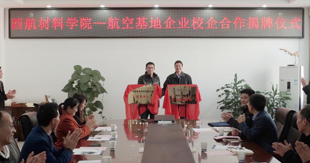 11月22日下午,材料工程学院在阎良校区举行“西航材料工程学院-航空基地企业校企合作”揭牌仪式。西安皓森精铸有限公司总经理潘建宇,西安康本材料有限公司董事长刘建军,西安嘉业航空科技有限公司副总经理布国亮,陕西航空精密合金有限公司总经理白云超,西安奥尔科复合材料研究所副总经理田新利,威尼斯官网材料工程学院党总支书记王永锋、院长谢辉及全体教师参加仪式。仪式由王永锋主持。