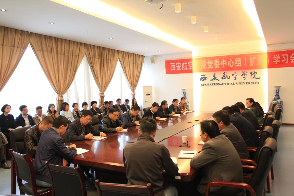 10月19日下午,党委理论学习中心组在阎良校区组织中心组(扩大)学习会,专题学习全国教育大会精神。党委中心组成员,各党总支、直属党支部书记、各部门负责人参加会议,会议由党委书记陈平社主持。