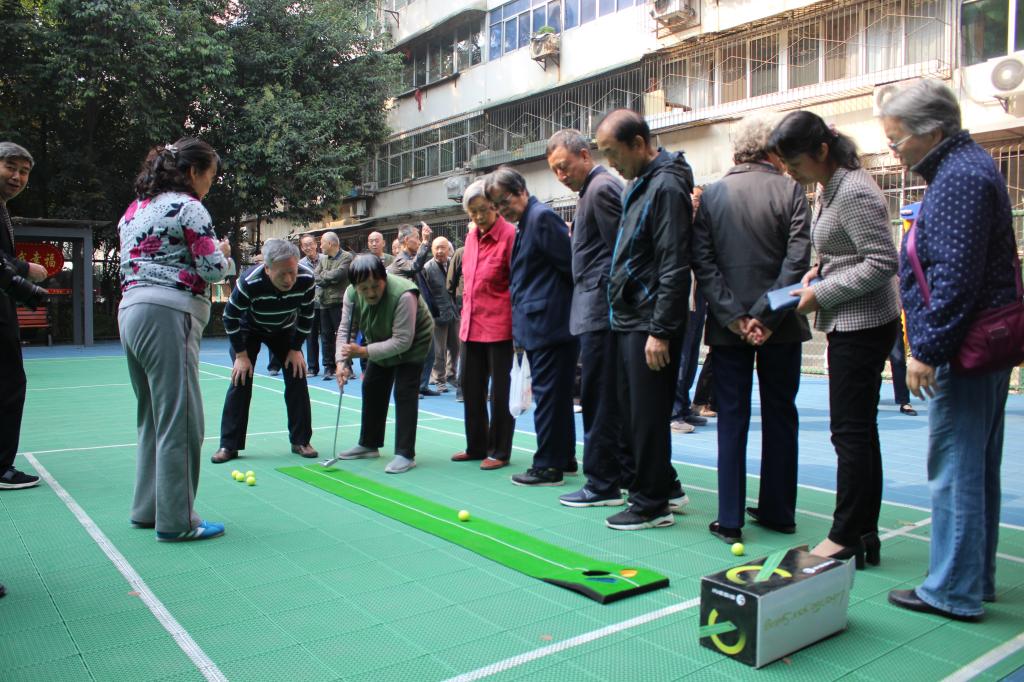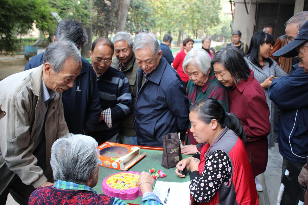今年的游艺项目包括扔沙包、小小高尔夫、钓鱼比赛、运送兵乓球、保龄球等传统项目,并增添了原地投篮、扔飞镖两个新项目。老同志们积极参与游艺活动,现场气氛热烈,各个项目场地都排起了长龙。部分行动不方便的老同志在家人的陪伴下也来到现场感受这浓浓的节日氛围。
