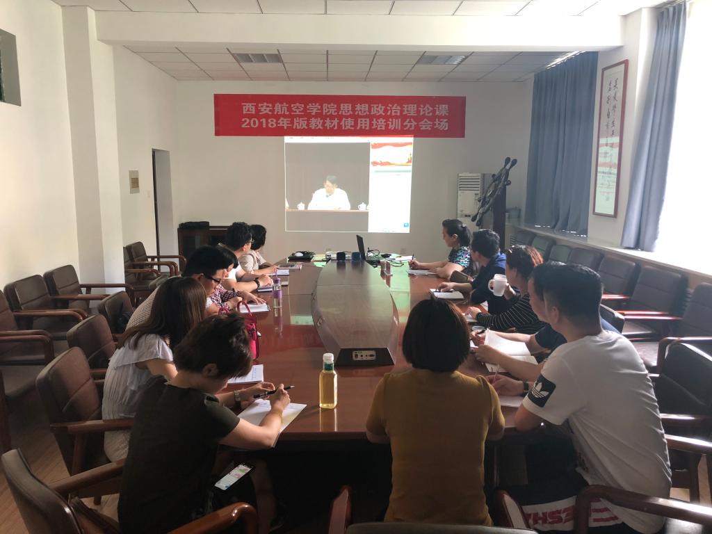 为深入学习宣传贯彻党的十九大精神,推动习近平新时代中国特色社会主义思想进教材、进课堂、进头脑,搭建高校思政课教学交流学习平台,5月14日下午,思政部组织思政课教师参加教育部教材司举办的高校思想政治理论课2018年版教材使用培训工作视频会议。党委副书记谭少敏,思政部主任程健康及部分思想政治理论课专兼职教师参加了本次培训会的开班仪式。