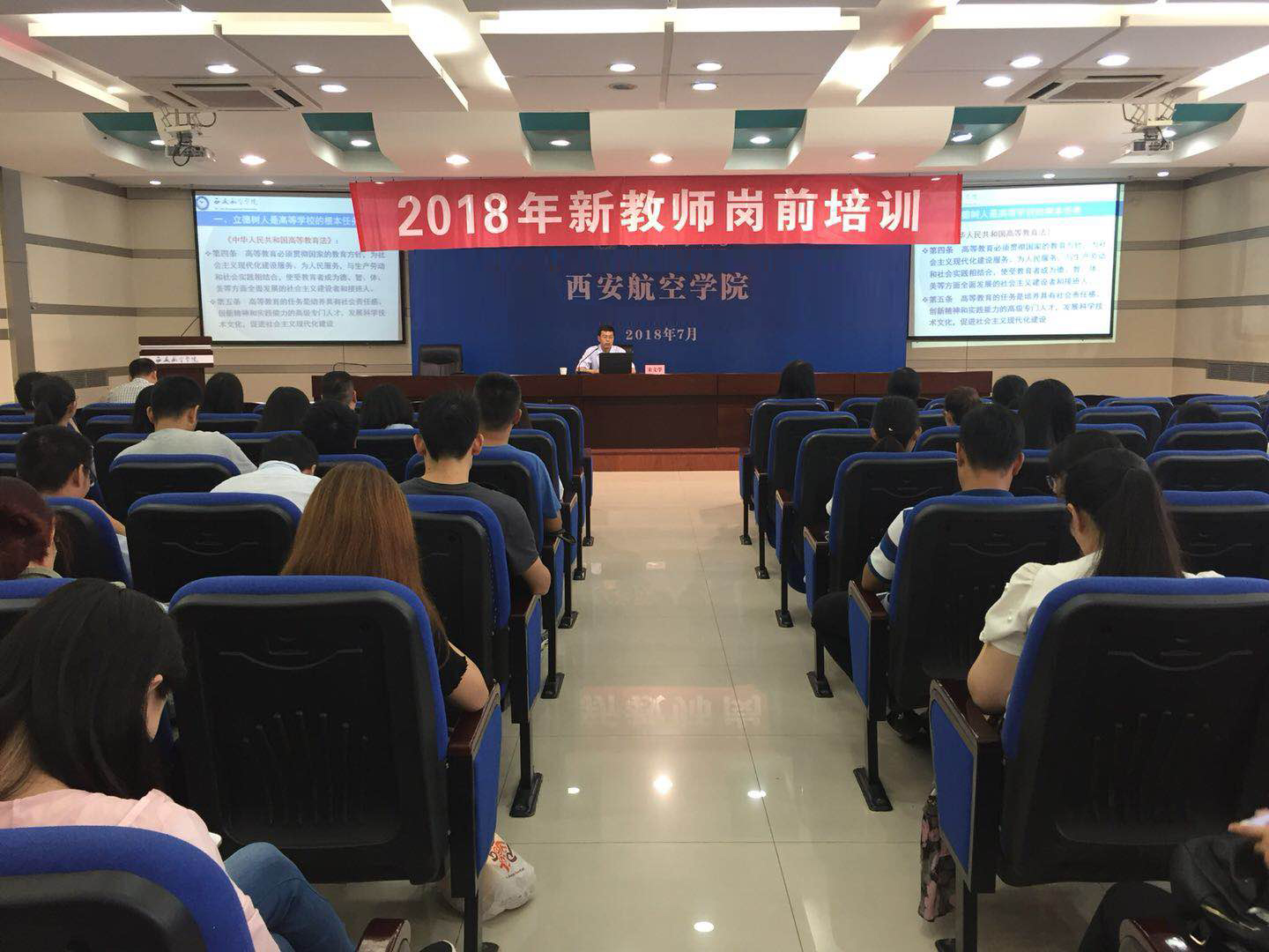 7月5日上午,学校教师发展中心邀请副校长、省级教学名师宋文学教授在沣惠校区报告厅为新进教师作了题为“争做‘四有’好教师,坚持立德树人”的专题报告,学校近百余名新进教师参加了本次专题报告。报告会由人事处副处长周华主持。