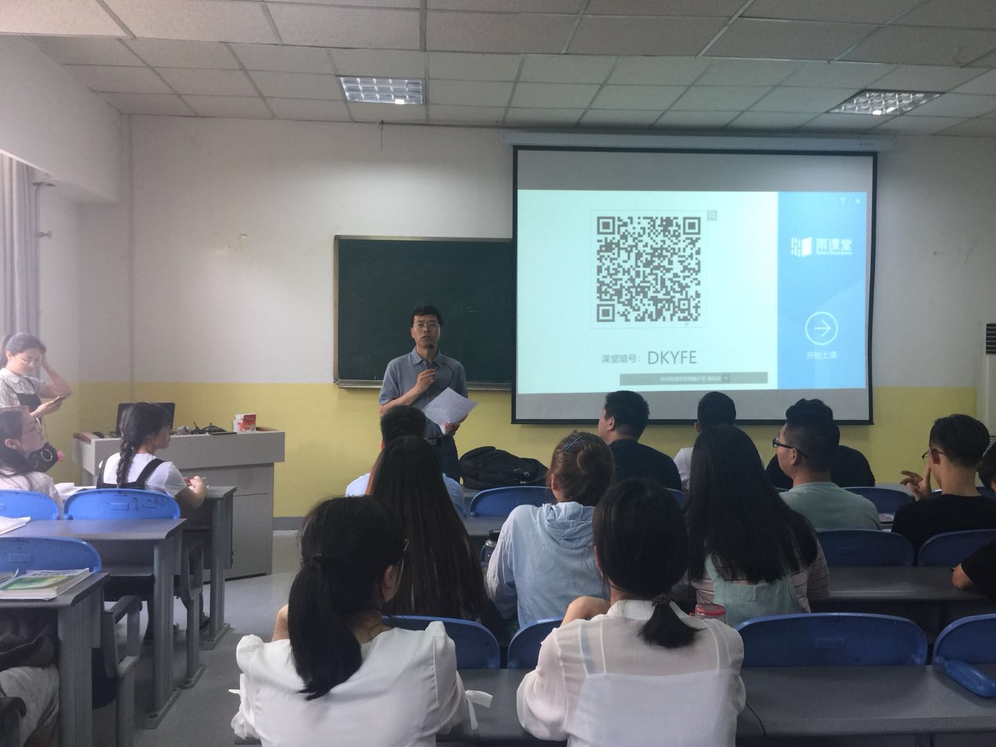 本次观摩课由理学院周千老师讲授《概率论与数理统计》,外国语学院杨向娟老师讲授《英语国家概况》。课程有关内容采用“雨课堂”这一新的智慧教学工具,授课过程中教师可以将授课PPT课件、习题、语音等推送到学生手机端,并能够实现课堂实时答疑、弹幕互动等,为传统课堂教学师生互动提供完美解决方案。授课教师将新的教学手段应用于课堂教学,开创新的教学方法,对参加观摩课的人员起到了示范作用。