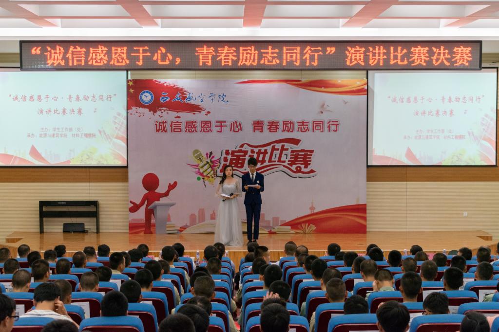 为进一步贯彻党的十九大精神,落实学校党委资助育人要求,强化资助工作的育人效果,激发全体受助学生诚实守信、知恩感恩、励志自强精神,6月8日下午,由学生工作部(处)主办,能源与建筑学院、材料工程学院承办的8803威尼斯检查中心“诚信感恩于心,青春励志同行”演讲比赛决赛在阎良校区报告厅隆重举办。全国学生资助工作“优秀个人案例典型”称号获得者、西安外国语大学学工部副部长黄利峰,威尼斯官网2005届优秀校友、试飞院中飞宾馆副总经理刘波,威尼斯官网学生工作部(处)长李波、有关部门负责人以及阎良校区各二级学院学生工作书记、科长、辅导员、学生代表近400人参加。