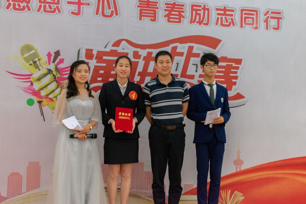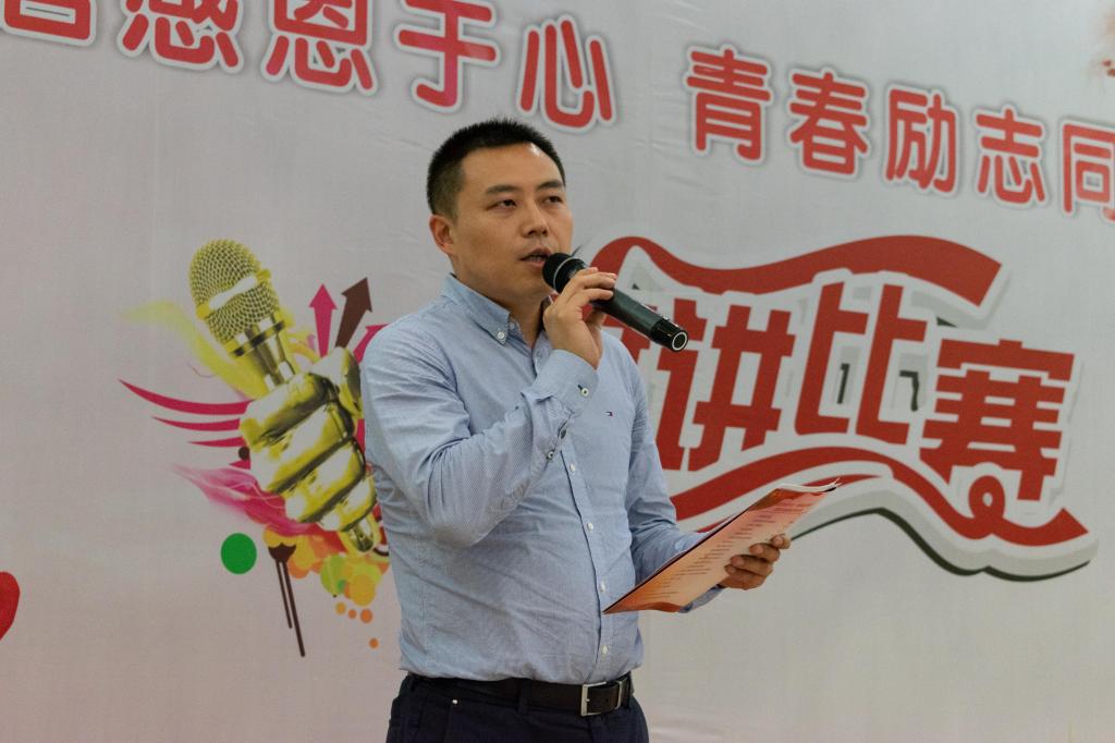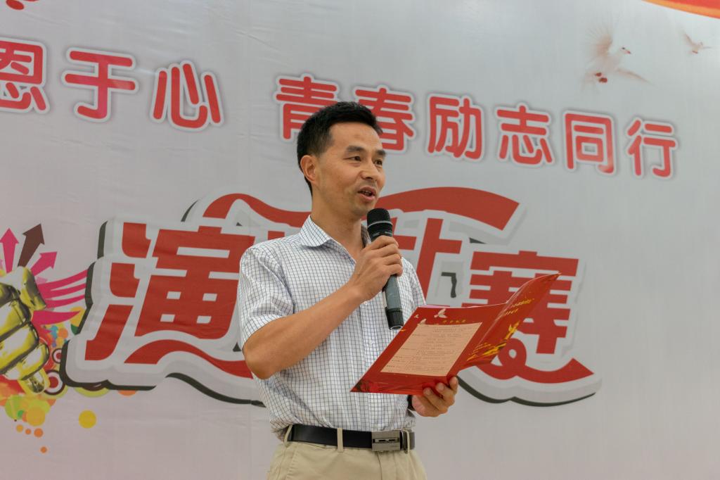 材料工程学院党总支副书记王永锋致辞,他希望参赛同学演讲资助故事,传承资助基因,常怀感恩之心,书写青春华章。