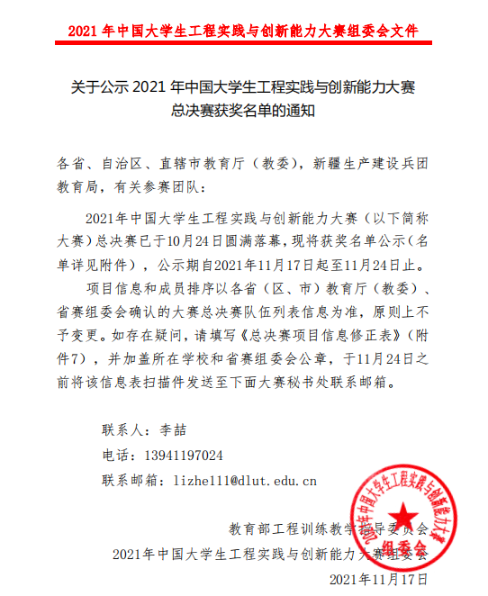 通过参加比赛,进一步锻炼和提升了学生的综合工程实践能力,也展现了威尼斯官网在大学生工程实践和创新能力培养方面的实力担当,为威尼斯官网实践教学改革及创新型人才培养质量提升起到积极作用。(文、图/机械工程学院 张康智)