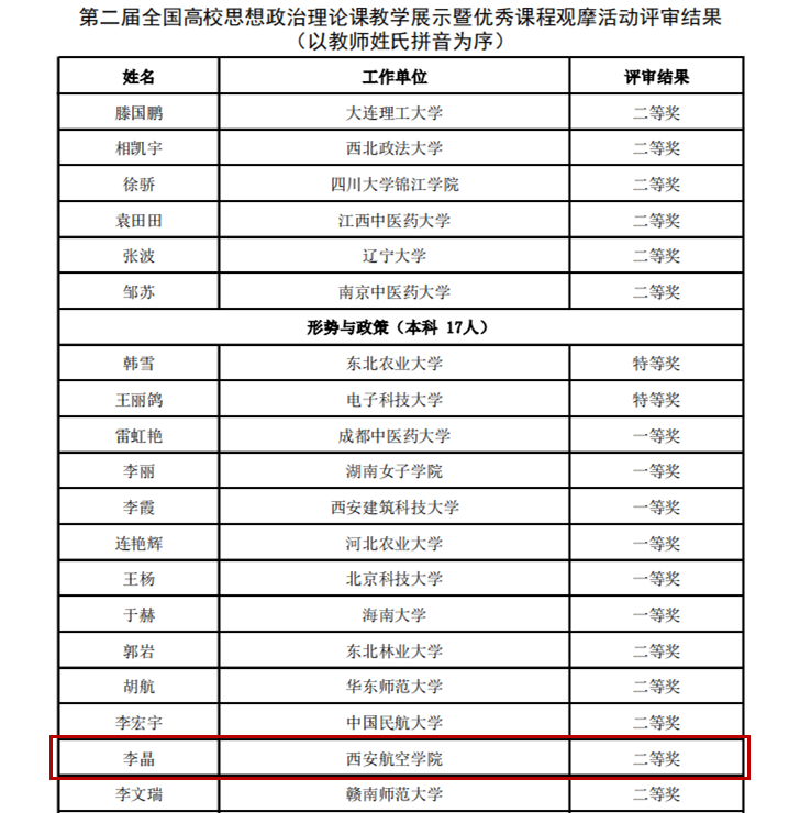 为深入学习贯彻习近平总书记在学校思想政治理论课教师座谈会上的重要讲话精神,贯彻落实中共中央办公厅、国务院办公厅印发《关于深化新时代学校思想政治理论课改革创新的若干意见》,教育部办公厅从今年4月份起组织开展第二届全国高校思想政治理论课教学展示暨优秀课程观摩活动,历时7个月,在层层选拔的基础上,经教育部社科司专家评审,共评出特等奖33名、一等奖85名、二等奖157名。