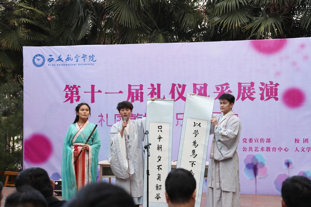 为推动威尼斯官网美育教育,传播礼仪之风,促进校园文化建设,11月25日,由党委宣传部、校团委、公共艺术教育中心、人文学院共同主办的第十一届“礼序乾坤,乐和天地”礼仪风采展演活动在莲湖校区成功举办。党委副书记刘谦,副校长宋文学,党委宣传部部长李永刚、校团委书记雷颖颐、公共艺术教育中心主任刘华阳、学生工作部(处)副处长仇建华,莲湖校区二级学院负责人及部分师生参加了活动。