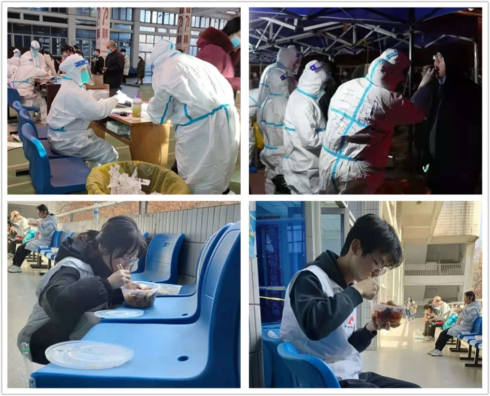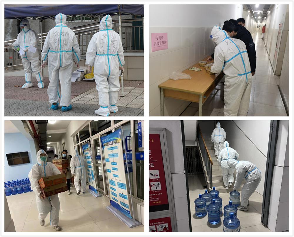 在疫情防控服务保障的队伍中,有不谙世事的稚嫩脸庞,有年近退休的国家级教学名师,有离开家中年幼孩子的母亲和父亲,有不眠不休的校医院医护工作者。他们提着简单的行囊,很多人甚至什么都没带就匆匆赶到学校,从早到晚高强度的工作,睡在办公室和学生宿舍,他们从没有一句怨言,只为守护好这一片校园。当他们穿上防护服化身“大白”后,就都变成了无坚不摧的战士,他们的心中只有一个信念,尽快把物资送到每一位隔离同学的手中,让他们早点吃上饭、喝上水。