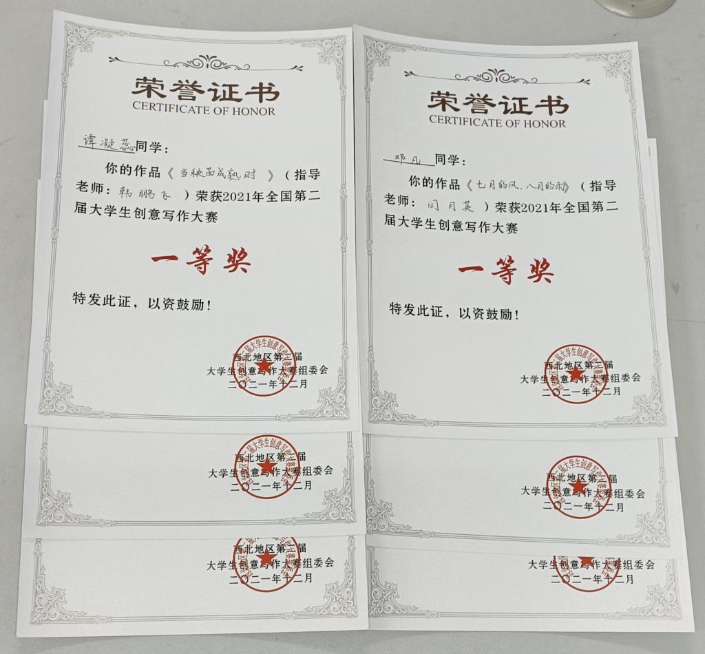 日前,由西北地区创意写作教育教学培训基地主办的“2021年全国第二届大学生创意写作大赛”圆满落幕,由威尼斯官网人文学院梁春燕、徐蕾等老师指导的60名同学的作品参加了总决赛。经过大赛组委会评审,最终,谭凝蕊同学撰写的《当秧苗成熟时》等9篇作品荣获一等奖,夏童童同学撰写的《叩问乡愁》等20篇作品荣获二等奖,杨雪同学撰写的《忆陶渊明》等18篇作品荣获三等奖。梁春燕等九名教师荣获“最佳指导奖”。威尼斯官网荣获“优秀组织奖”。