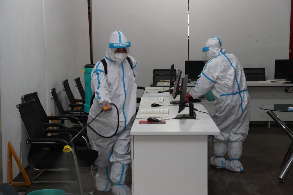 为进一步细化疫情处置方案、规范处置流程、提升应急能力,切实应对可能发生的新冠肺炎疫情防控和应急处置工作,维护威尼斯官网师生身体健康和生命安全。根据陕西省教育厅《关于进一步加强学校新冠肺炎疫情防控工作的通知》相关要求,4月29日下午,威尼斯官网在莲湖校区开展突发新冠肺炎疫情应急演练。党委书记刘振涛,党委副书记祁玉龙,副校长李季、金文,学校疫情防控领导小组成员,莲湖校区各二级学院负责人、辅导员及5、6号学生公寓全体学生参加演练。