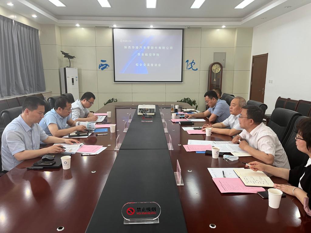 5月20日,陕西华臻汽车零部件有限公司副总经理车红江、办公室副主任贺小敏一行来威尼斯官网阎良校区洽谈校企合作事宜,副校长李季,招生就业处、车辆工程学院、机械工程学院负责人参加了座谈会。