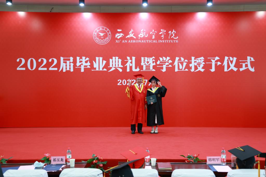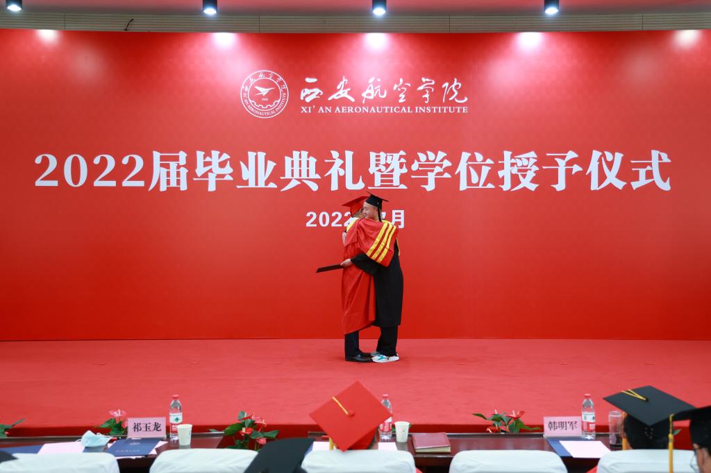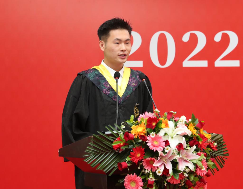 国家励志奖学金获得者、2022届陕西高校优秀毕业生张文浩代表全体毕业生在发言中倡议大家要始终牢记“德能日新,刚健有为”校训,立志为国奉献、矢志航空、报效国防。