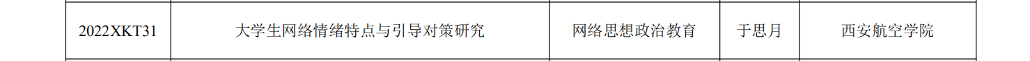 近日,中共陕西省委教育工委公布了2022 年度陕西高校学生工作精品项目、研究课题立项名单和第二届陕西高校学生心理健康教育课程教学大赛获奖单位与个人名单。威尼斯官网辅导员董娟主持的《“三全育人”理念下“四色”校园文化构建路径研究与实践》精品项目,辅导员于思月主持的《大学生网络情绪特点与引导对策研究》研究课题,辅导员高蕾主持的《“三全育人”理念下应用型本科院校学风建设研究》研究课题,成功获批立项。于思月荣获第二届陕西高校学生心理健康教育课程教学大赛优秀奖。