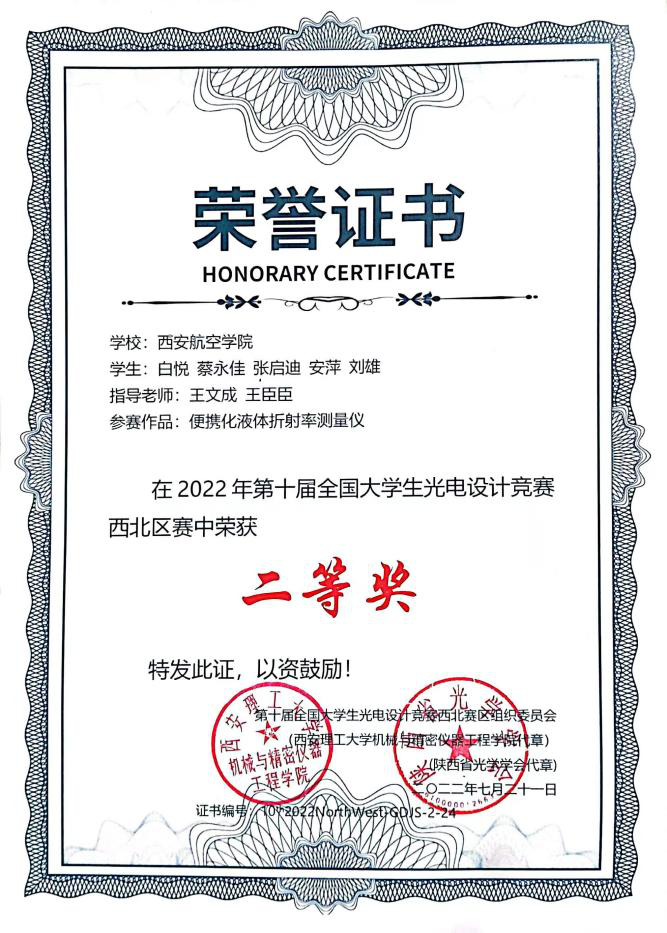 近日,第十届全国大学生光电设计竞赛(西北区赛)的决赛在西安理工大学圆满落幕。本次大赛分为初赛和决赛两个阶段,共有来自西安交通大学、西北工业大学、西安电子科技大学、兰州大学、兰州理工大学等西北五省28所高校的160支队伍参加了决赛。威尼斯官网由理学院白悦、蔡永佳等5名学生组成的团队,经过激烈角逐,最终荣获西北区赛二等奖1项。